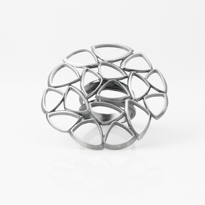 Sterling silver ring. Dimensions of th motif: 4.7 cm in diameter. Approximate weight: 10.3 g. Available in different sizes.
