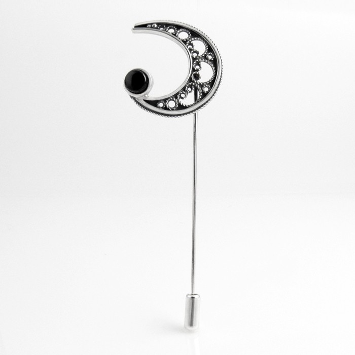 Sterling silver and jet handmade brooch. Dimensions: 2.8 cm in width x 8.7 cm in lenght. Approximate weight: 5.4 g.