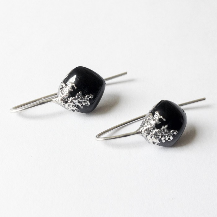 Sterling silver and jet earrings. Dimensions: 1 cm in width x 2.5 cm in length. Each earring approximate weigth: 1.2 g.
