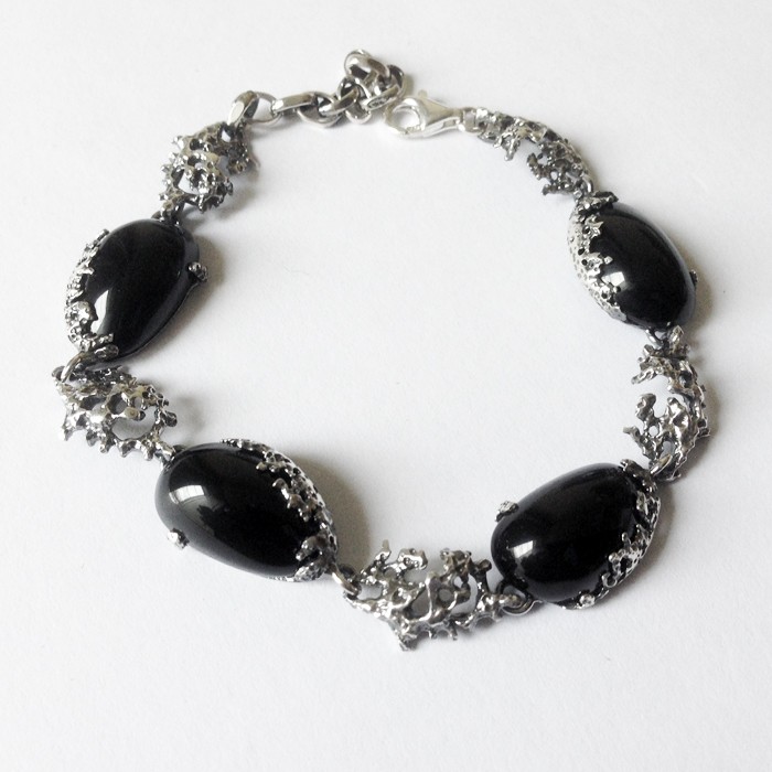 Sterling silver and jet bracelet. Dimensions: 1 cm in width x 19.5 cm in length. Appoximate weigth: 9.9 g.