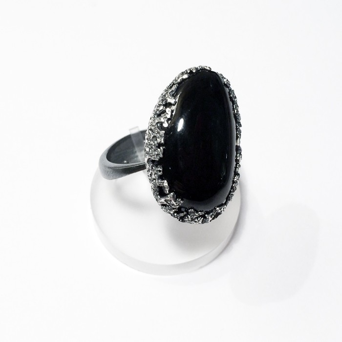 Sterling silver and jet ring. Dimensions: 1.5 cm in width x 2.5 cm in length. Appoximate weigth: 7.3 g.