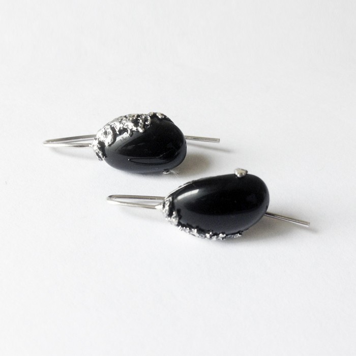 Sterling silver and jet earrings. Dimensions: 1 cm in width x 2.7 cm in length. Each earring approximate weigth: 1.7 g.