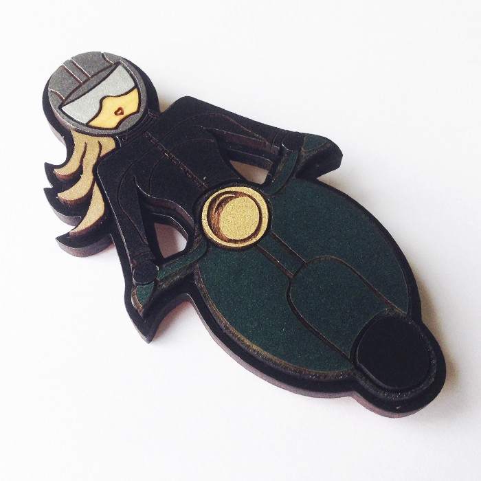 Alder wood brooch. Dimensions: 4.5 cm in width x 8.4 cm in lenght. Approximate weigth: 7.4 g.