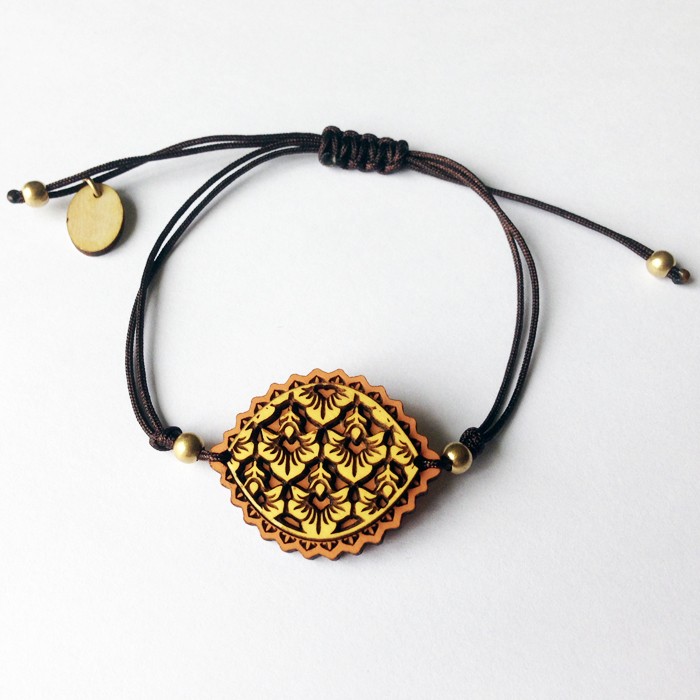 Alder wood adaptable bracelet. Dimensions: 2.8 cm in width x 2.3 cm in lenght. Approximate weigth: 1.7 g.
