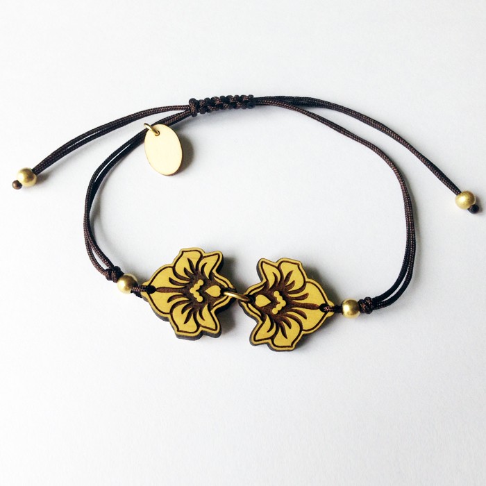 Alder wood adaptable bracelet. Dimensions: 3.8 cm in width x 1.7 cm in lenght. Approximate weigth: 1.8 g.