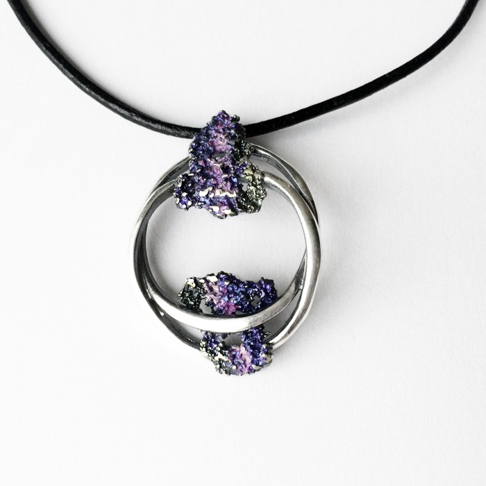 Sterling silver and natural pigments pendant with a 42 cm long leather cord with silver clasp. Dimensions of the pendant: 2.6 cm in width x 4 cm in length. Approximate weight: 9.6 g.