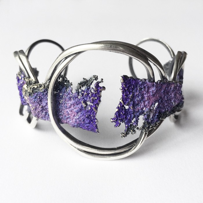 Sterling silver and natural pigments bracelet. Dimensions: 4 cm in width. Approximate weight: 36.7 g.