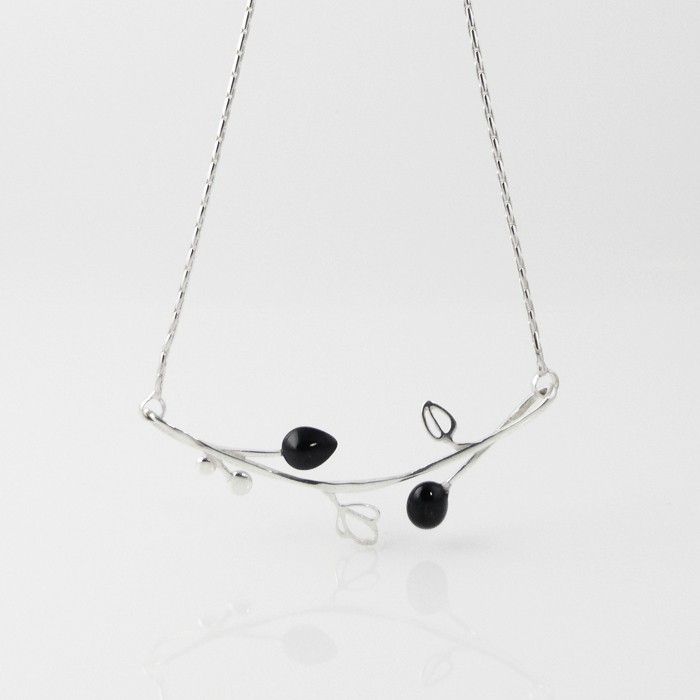 Sterling silver and jet necklace. Dimensions: 2.3 cm in width x 45 cm in length. Approximate weight: 9.8 g.