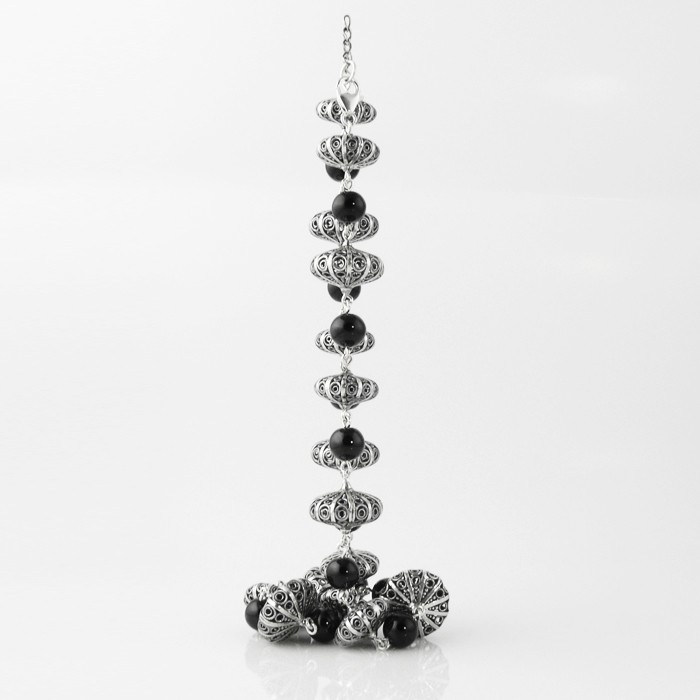 Sterling silver and jet necklace. Dimensions: 2.1 cm in width x 50 cm in length. Approximate weight: 72.6 g.