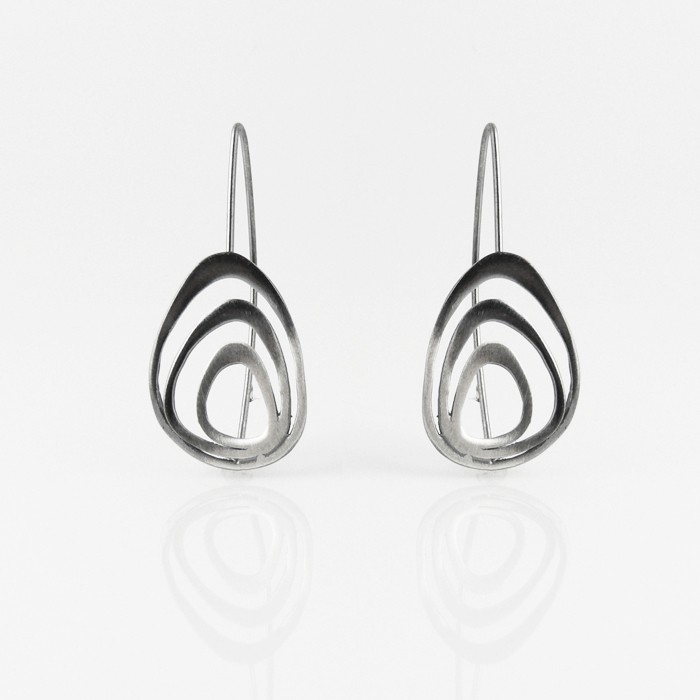 Sterling silver earrings. Dimensions: 1.9 cm in width x 3.8 cm in length. One earring approximate weight: 1.6 g.