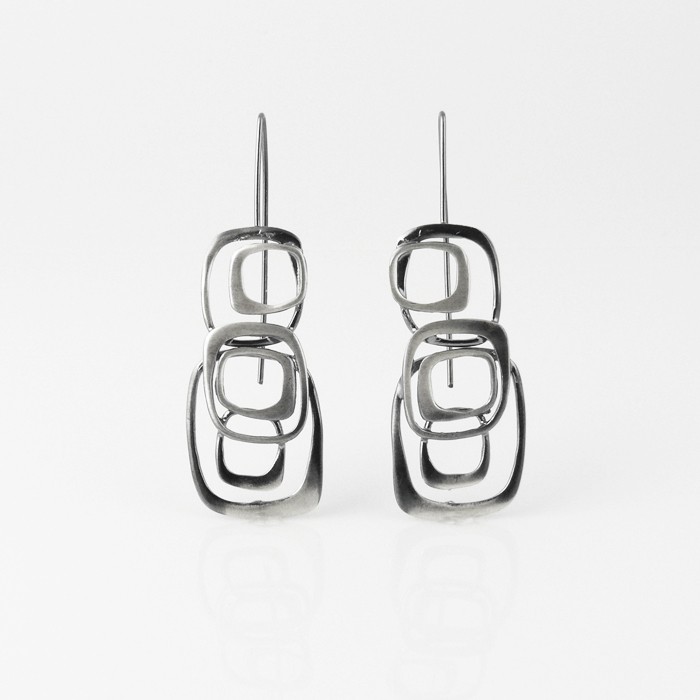 Sterling silver earrings. Dimensions: 1.9 cm in width x 5.8 cm in length. One earring approximate weight: 3.5 g.