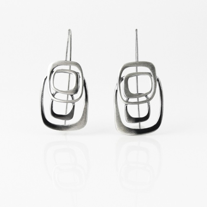 Sterling silver earrings. Dimensions: 1.9 cm in width x 4.2 cm in length. One earring approximate weight: 2.5 g.