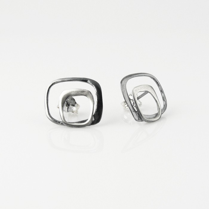 Sterling silver earrings clasped by a butterfly nut at the back. Dimensions: 1.4 cm in width x 1.7 cm in length.