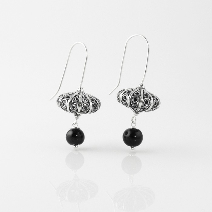 Sterling silver and jet earrings. Dimensions: 1.7 cm in width x 5 cm in length. One earring approximate weight: 5.7 g.