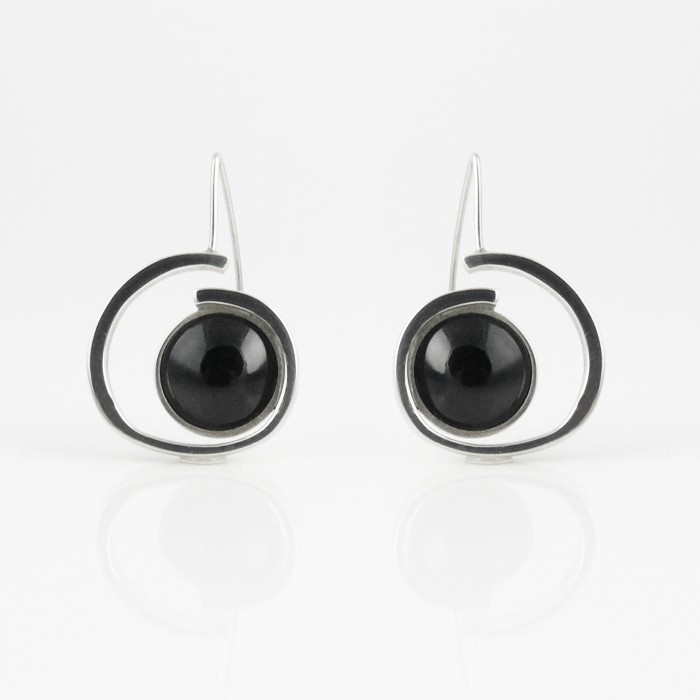 Sterling silver and jet earrings. Dimensions: 2.8 cm in width x 3.5 cm in length. One earring approximate weight: 6.9 g.
