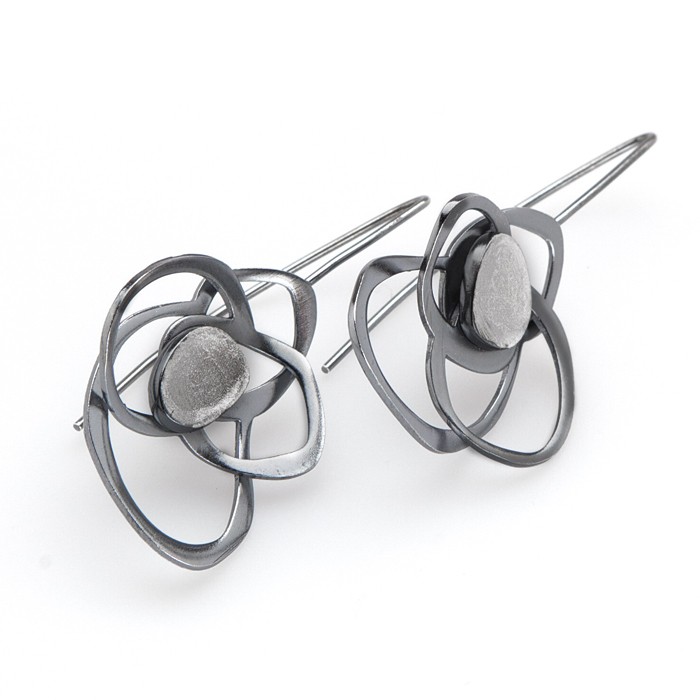 Sterling silver earrings. Dimensions: 2.5 cm in width x 4.7 cm in length. One earring approximate weight: 4.2 g.