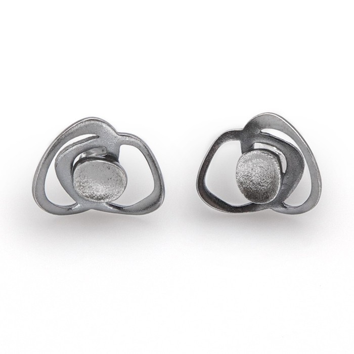 Sterling silver earrings clasped by a butterfly nut at the back. Dimensions: 1.1 cm in diameter. One earring approximate weight: 1.6 g.