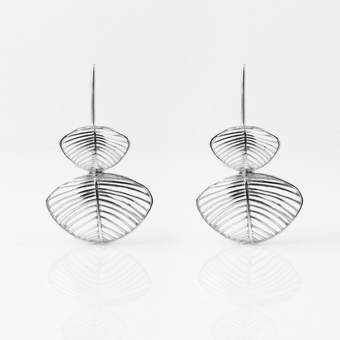 Sterling silver earrings. Dimensions: 2.5 cm in width x 4.2 cm in length. Each earring approximate weight: 2.1 g.