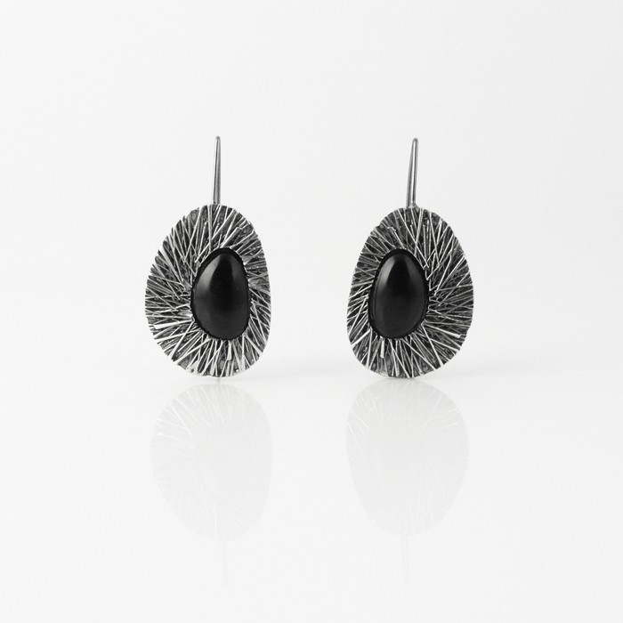 Sterling silver and jet earrings. Dimensions: 1.2 cm in width x 2.5 cm in length. One earring approximate weight: 1.9 g.