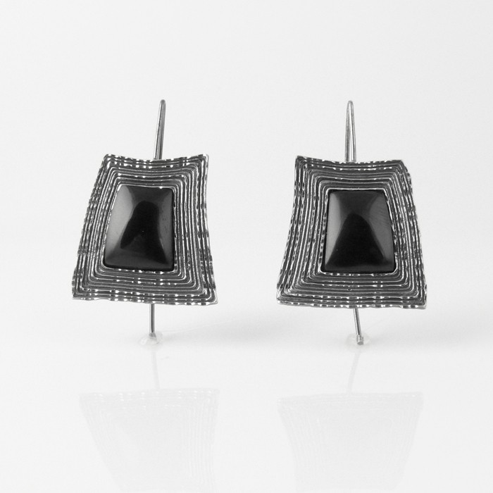 Sterling silver and jet earrings. Dimensions: 2.5 cm in width x 3.9 cm in length. One earring approximate weight: 6.7 g.