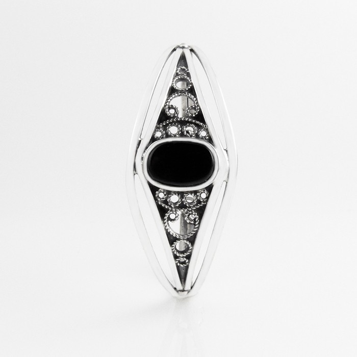 Sterling silver and jet handmade bracelet. Dimensions: 1.8 cm in width x 6 cm in diameter. Approximate weight: 12.9 g.