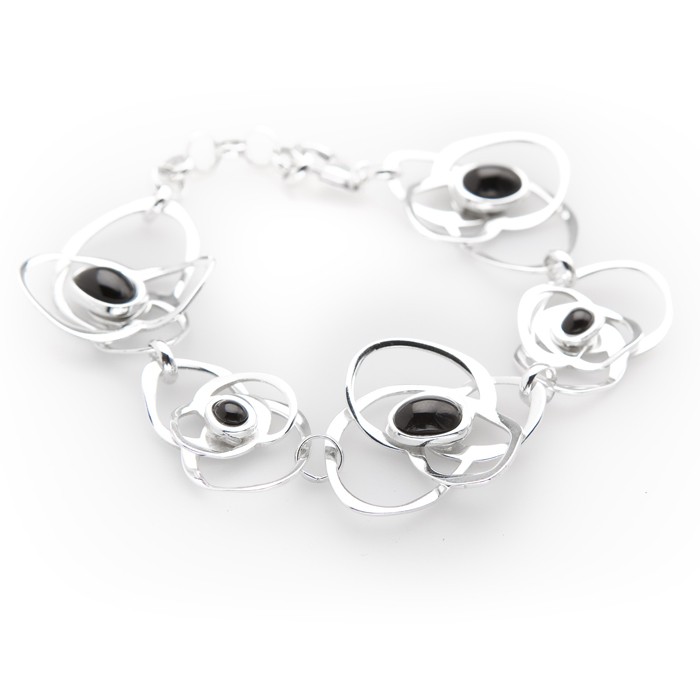 Sterling silver and jet bracelet. Dimensions: 2.5 cm in width x 20 cm in length. Approximate weight: 19.0 g.