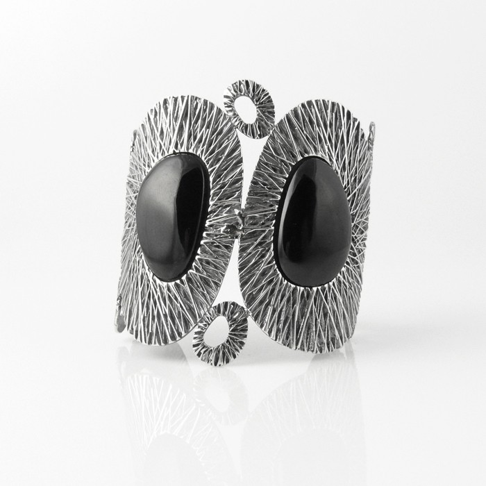 Sterling silver and jet bracelet. Dimensions: 7 cm in width x 6 cm in diameter. Approximate weight: 103.1 g.