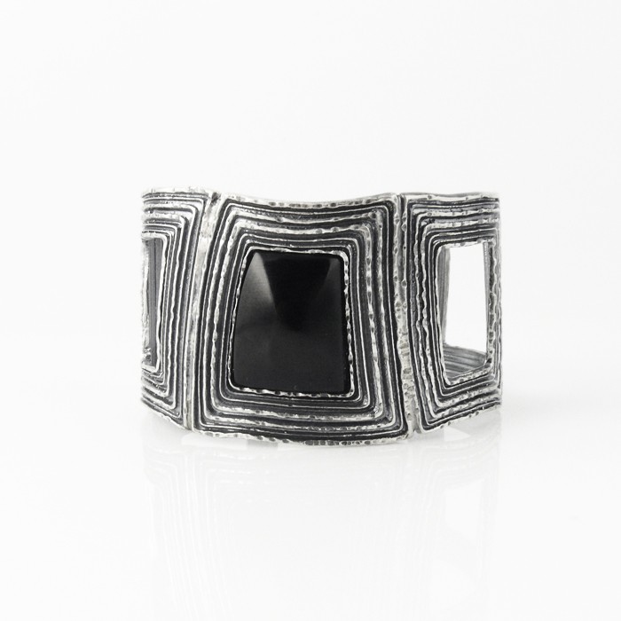 Sterling silver and jet bracelet. Dimensions: 4 cm in width x 6 cm in diameter.