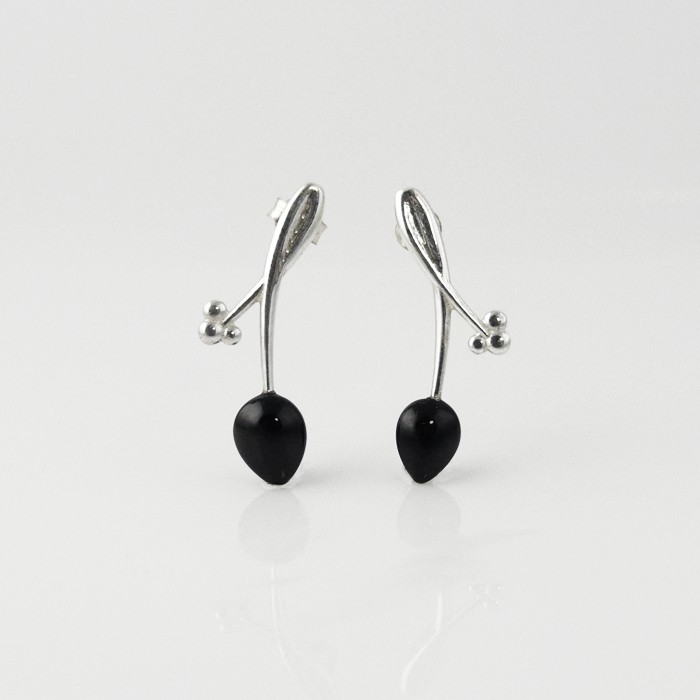 Sterling silver and jet earrings clasped by a butterfly nut at the back. Dimensions: 1.9 cm in width x 3.5 cm in length.