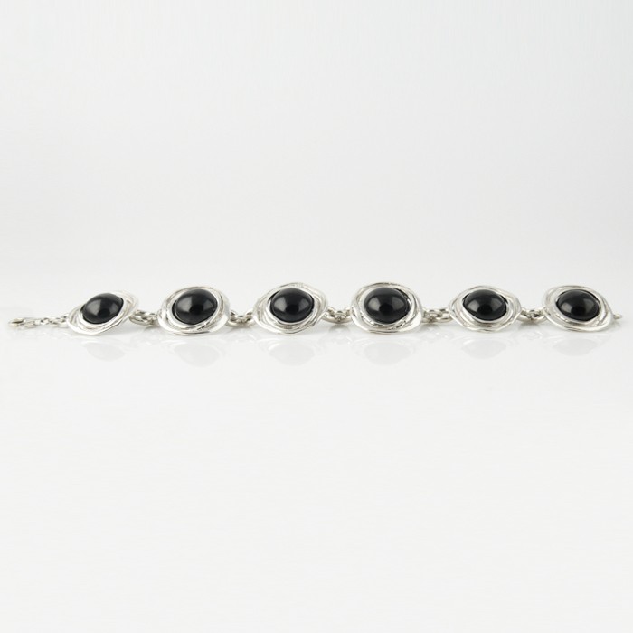 Sterling silver and jet bracelet. Dimensions: 2.2 cm in width x 19 cm in length. Approximate weight: 35.2 g.