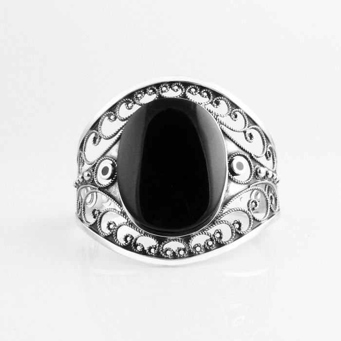 Sterling silver and jet handmade bracelet. Dimensions: 5.5 cm in width x 6.5 cm in diameter. Approximate weight: 31.2 g.
