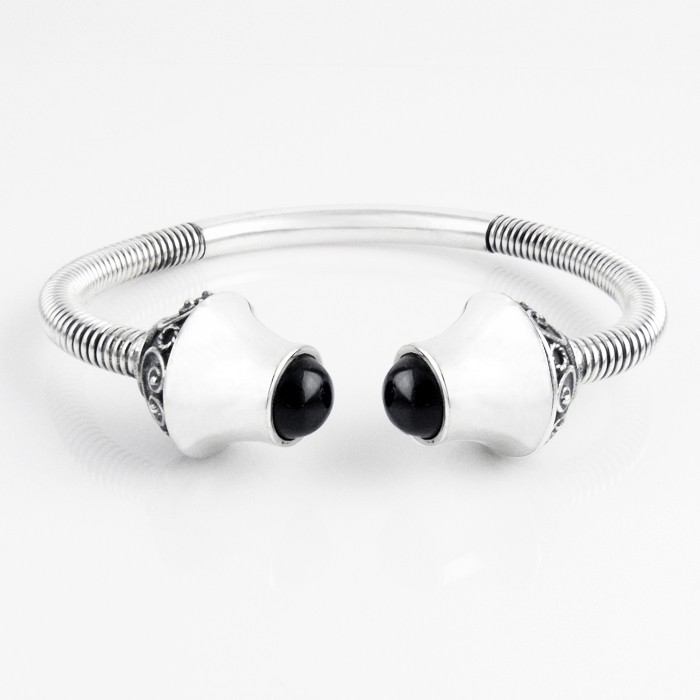 Pulsera de plata de ley y azabache. Dimensiones: 6.5 cm de diámetro. Peso aproximado: 32 g.